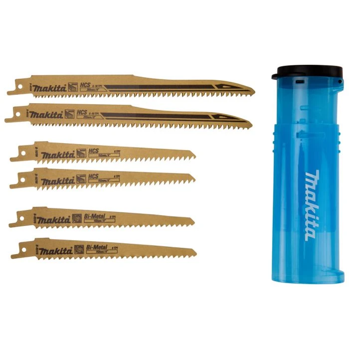Makita reciprozaagbladenset met diverse zaagbladen, geschikt voor hout en hout met spijkers.