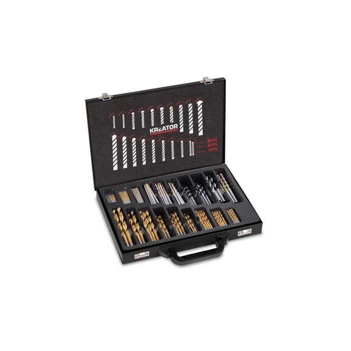 Deze handige boorset bevat 120 boren, elk met een sterke en duurzame titaniumcoating. De set bevat 70 metaalboren, 35 steenboren en 15 houtboren. De verschillende boren zitten overzichtelijke opgeborgen in een luxueze koffer.
