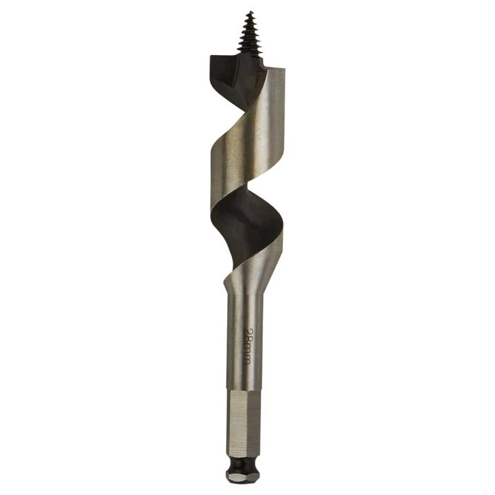 Slangenboor 28x165mm met 7/16″ zeskant aansluiting.