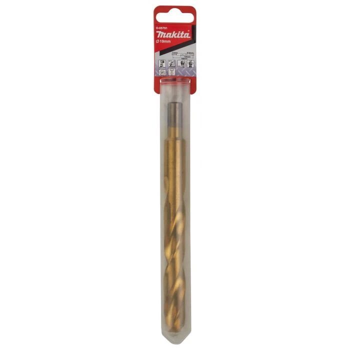 Makita HSS-TiN metaalboor 19,0x198mm, met 118° geslepen boorpunt voor nauwkeurig boren.