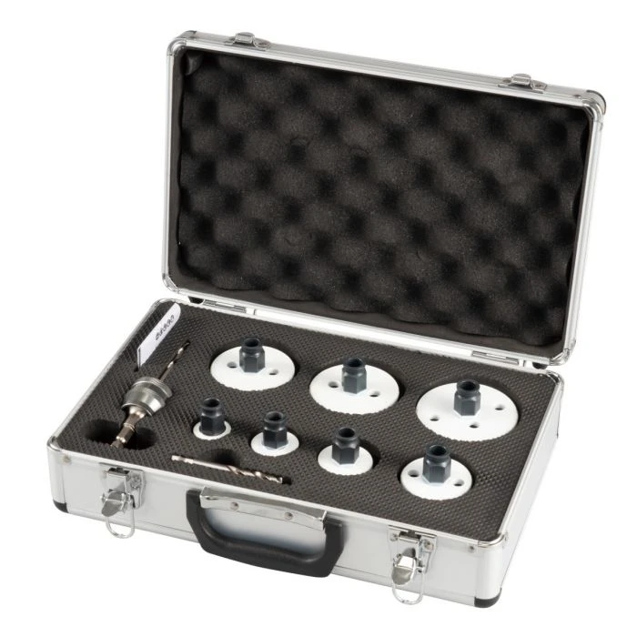 9-delige gatzaagset BiM bestaande uit zeven gatzagen in diameters 25, 32, 40, 51, 65, 68, 76, met een diepte van 44mm.