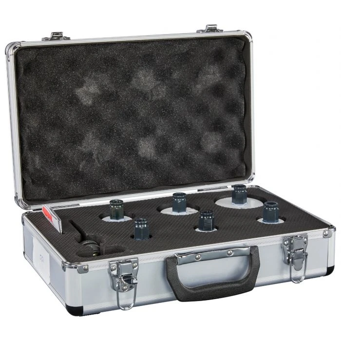 7-delige gatzaagset BiM in aluminium koffer, bestaande uit gatzagen in diameters 20, 25, 32, 40, 51, 65 en een diepte van 44mm.